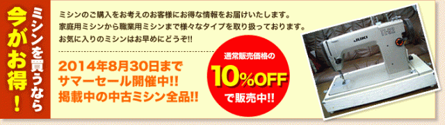 2014年08月30日までホームページ掲載中の中古ミシン全品【10%OFF】となっております!!