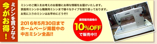 2016年5月30日までホームページ掲載中の中古ミシン全品!!【10%OFF】となっております!!
