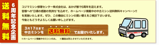 皆様への“日頃の感謝の気持ち”を込めて、ホームページ掲載中の中古ミシン送料無料キャンペーン!!を実施いたします。